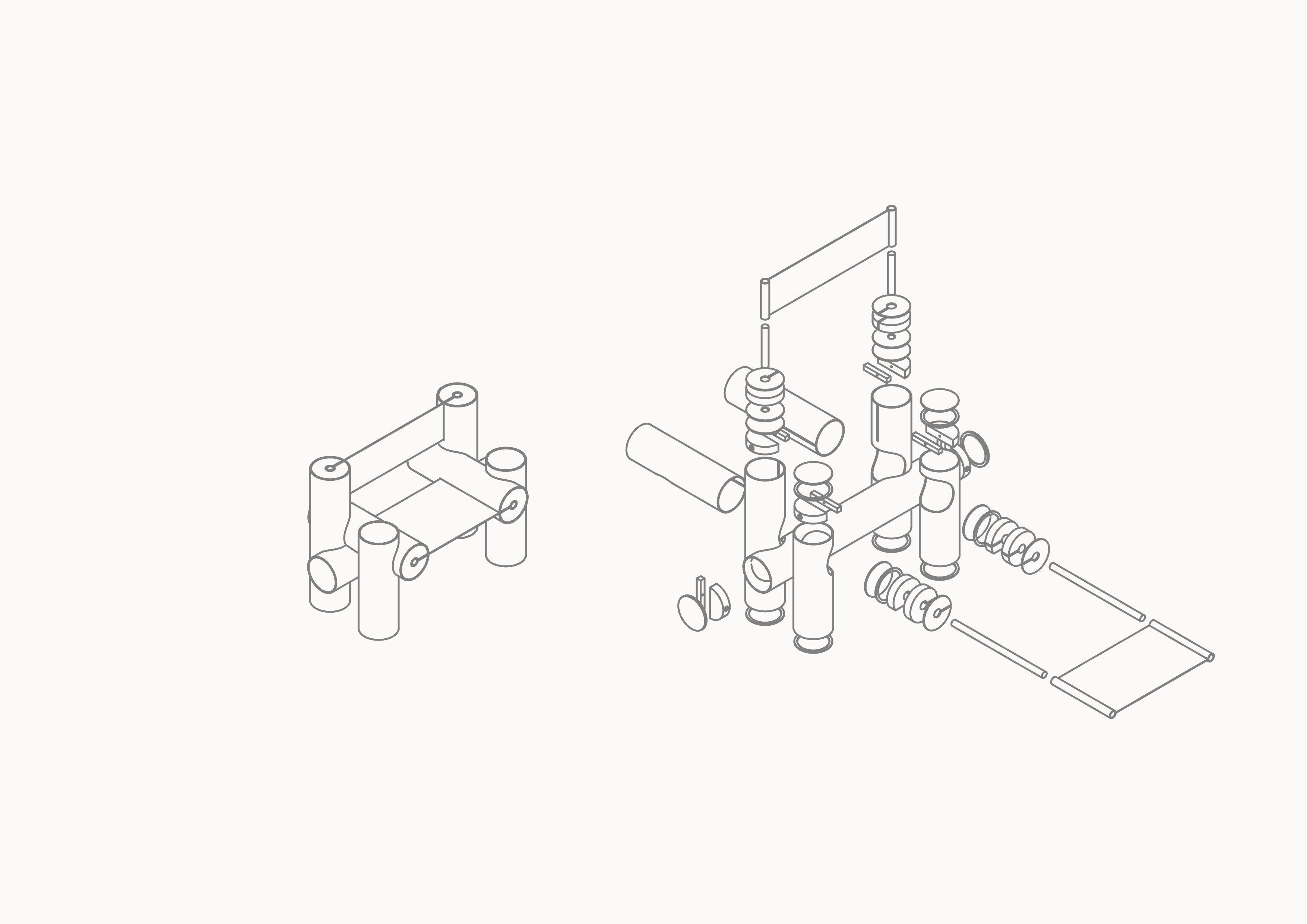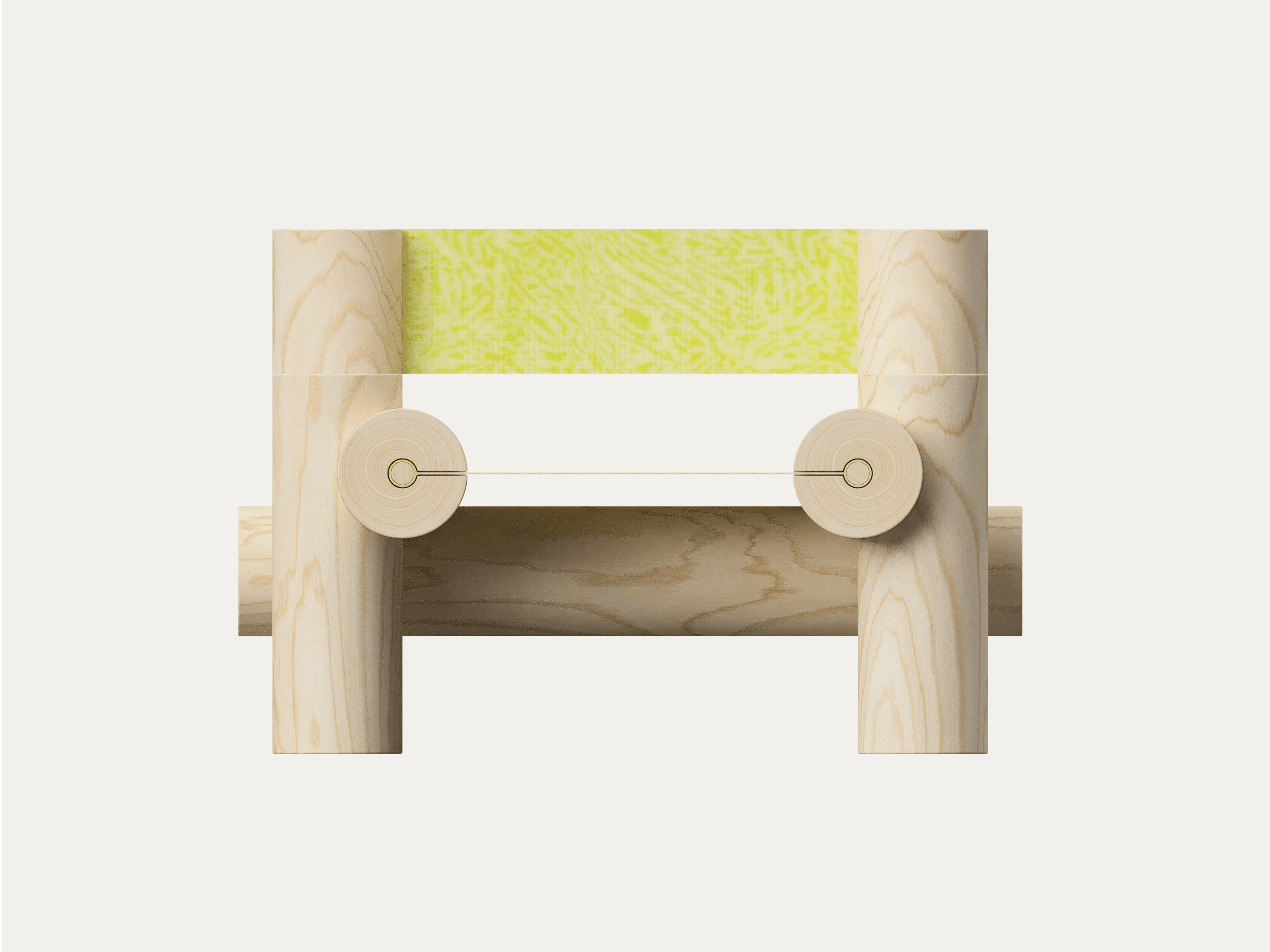 Inspired by folding stools and log cabins, the Seed Chair is heavy and large and aims to bring more friction to a frinctionless digitalized reality. The simple geometric shape and minimal function makes the chair disappear and allows the person to experience life fully. Seed Chair is made of bleached heat-treated pine logs and recycled synthetic elastic fabric.
